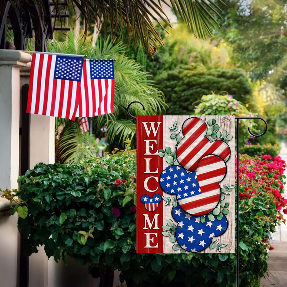 Welcome 4th of July Stars Stripes Patriotic Decorative Garden Flag, American USA Memorial Day Yard Outside Decorations, Summer Outdoor Small Home Decor Double Sided 12 x 18